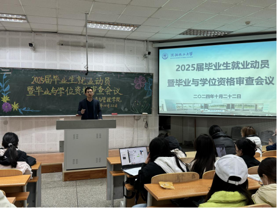 会上,孟丽老师围绕学校教务处关于确定2025届毕业生毕业与学位审查标准的通知,结合《沈阳化工大学教学培养方案》 、《沈阳化工大学学分制学籍管理办法》和《沈阳化工大学本科生学士学位授予工作有关规定》文件内容,向2025届本科生毕业生同学强调各专业的毕业条件与学位审查标准,并督促同学们利用网上办事大厅按时完成毕业与学位审查。