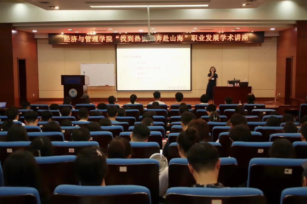 为更好地服务同学们求职就业的需求,解决同学们对于职业生涯的困惑与迷茫。6月19日下午,beat365英国官网网站在图书馆五楼学术报告厅开展了“找到热爱,奔赴山海”职业发展学术讲座。主讲人为松尾中国高级顾问、北京大学国家发展研究院BiMBA商学院面试官许蔓秋老师。此次讲座由金融教研室王文荣教授主持,beat365英国官网网站院长王蓉、副院长刘铁民、学工办辅导员及全体研究生参会。