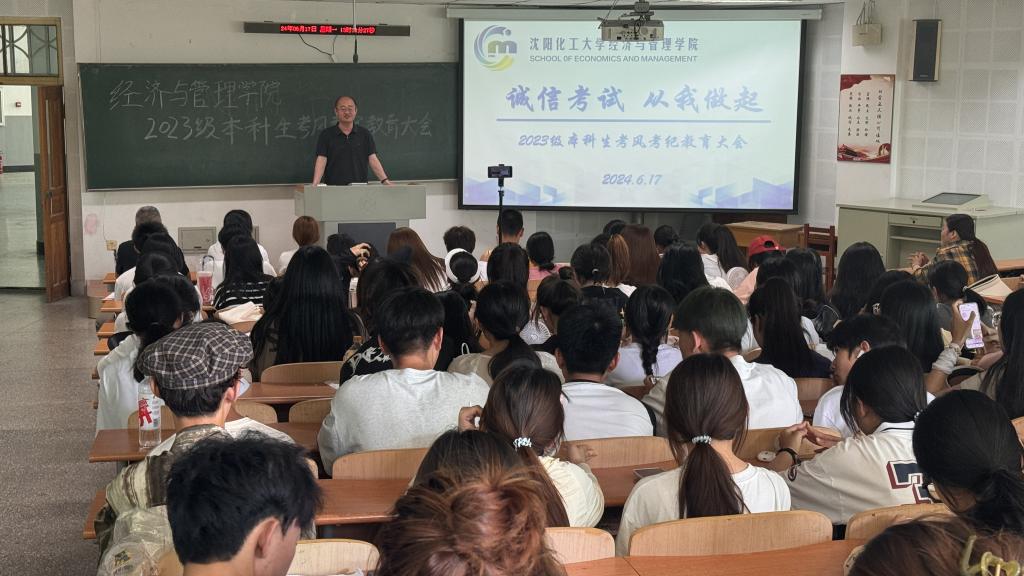 为进一步加强考风考纪教育,深入推进beat365官网学风建设工作,倡导“严肃考风考纪、弘扬优良学风、文明诚信应考”,增强同学们的诚信考试意识,保证考试的公正性,端正同学们的学习和考试态度。6月17日下午,“诚信考试,从我做起”2023级本科生考风考纪教育大会在通明楼232、213教室举行,大会由2023级辅导员王怀老师主持,beat365英国官网网站党委书记李丙文主讲,2023级全体学生参会。