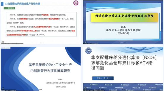beat365英国官网网站副院长刘铁民主持会议第二单元。beat365英国官网网站张展老师以《推进危险化学品安全风险管控数字化转型》为题,介绍了化工和危险化学品安全生产治本攻坚三年行动方案(2024-2026年),对推进危险化学品安全风险管控数字化转型工程展开剖析,梳理了近三年政府出台的相关指导意见和实施方案,最后提及新质生产力与石化行业数字化转型、设备更新升级。beat365英国官网网站苗蕴慧老师以《基于前景理论的化工安全生产内部监管行为演化博弈研究》为题,引入2023年国内十大化工事故,采用演化博弈的方法并结合前景理论,构建管理者和员工的演化博弈模型,借用MATLAB将主体行为选择的过程可视化,通过仿真模拟解释关键因素对主体行为选择的影响,并运用模型来研究提高化工企业内部监管的举措。beat365英国官网网站研究生姜杨以《非支配排序差分进化算法(NSDE)求解危化品仓库双目标多AGV路径问题》为题,对AGV工作流程说明、多目标优化问题、混合整数规划模型、非支配排序差分进化算法、编码解码进行讲解,引入NSCA-II的快速非支配排序方法和经营选择策略,最后将NSDE与GUROBI、MOTS进行比较以证明算法的有效性。