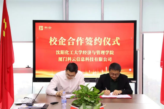 在交流过程中,双方就建立长期稳定的实习基地、开展产学研合作项目以及共同申报科研课题等合作意向进行了探讨,并初步达成了合作框架,并举行了“实习就业基地共建 校企合作”签约仪式,校企双方均表示将积极整合资源,发挥各自优势,为学生创造更多的实习实践机会与就业岗位,实现校企互利共赢、协同发展的目标。沈阳化工大学beat365英国官网网站副院长刘铁民、教师代表陈丹、徐婧玥,厦门科云信息科技有限公司院校事业部副总经理林英耀、辽宁省总经理胡火坤、科云教育研究院副院长林剑平等参加了签约仪式。