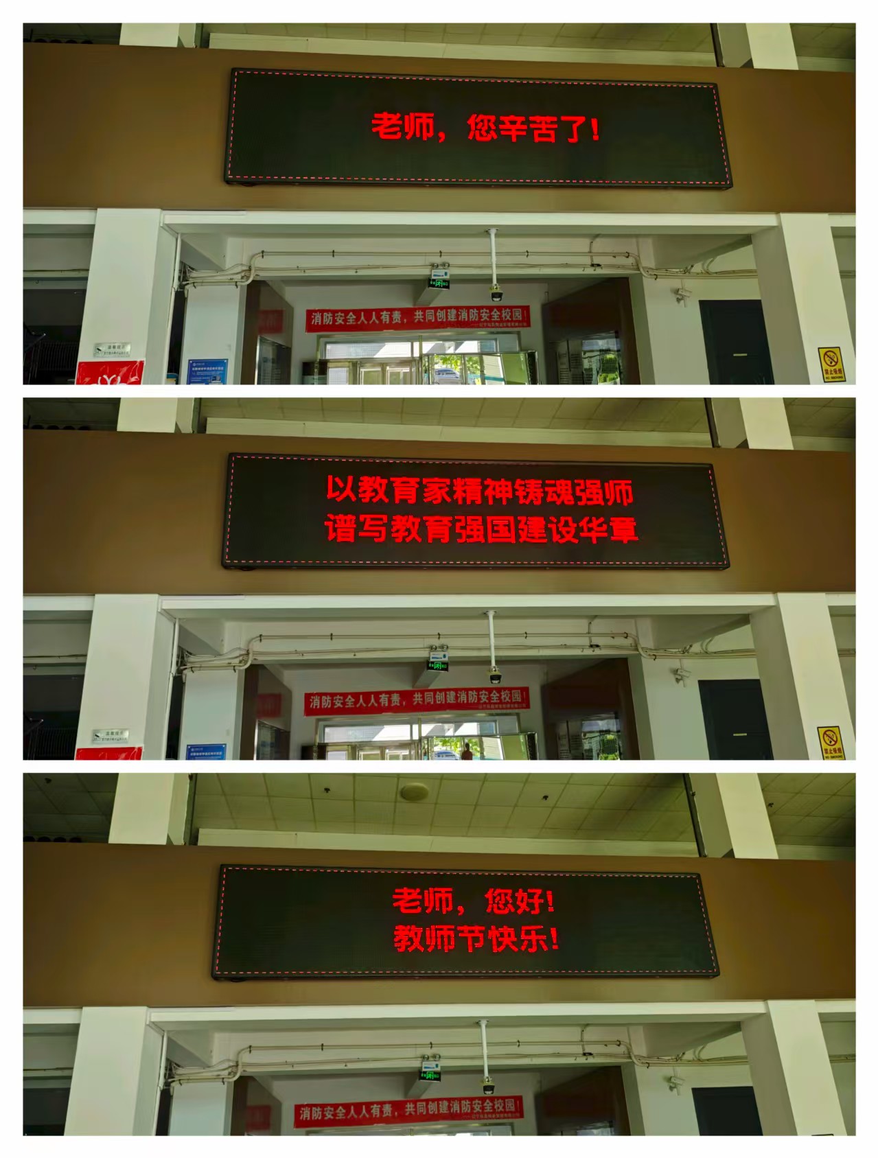 为营造浓厚节日氛围,学院积极开展“为教师亮灯”宣传活动。通明楼一楼电子屏循环滚动播放“老师,您辛苦了”“以教育家精神铸魂强师 谱写教育强国建设华章”“老师,您好!教师节快乐!”等暖心标语,明亮的字幕不仅扮靓校园,更让教师们切实感受到尊重与关怀,强化职业荣誉感。