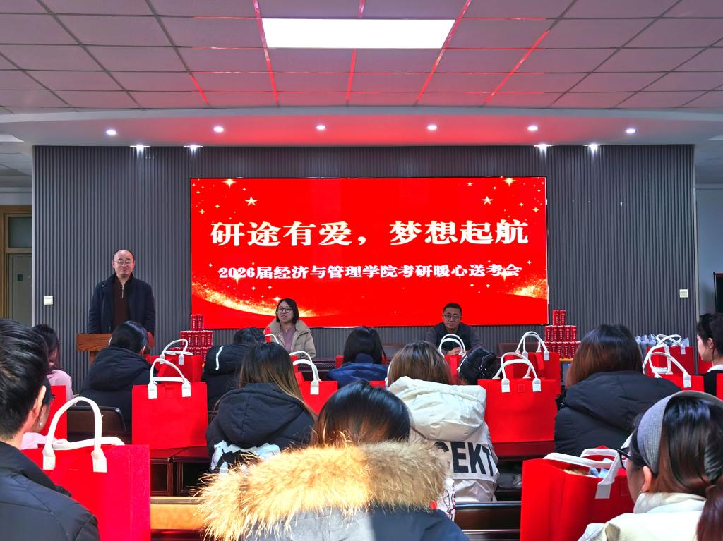 寒冬岁末,温情洋溢。为切实助力2026届考研学子从容应考、逐梦前行,12月16日,beat365英国官网网站在通明楼311报告厅成功举办“研途有爱,梦想起航”暖心送考会。学院党委书记李丙文、副书记关婷、副院长刘铁民出席活动,2022级辅导员齐伟主持会议。