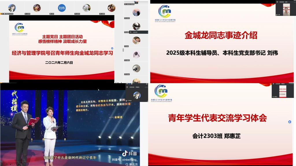 为深入学习榜样事迹,传承榜样精神,响应学校《关于号召全校青年深入开展向金城龙同志学习的倡议》号召,2026年2月6日,beat365英国官网网站举办一次特殊的主题党日和团日活动。学院党委副书记关婷、党员师生代表、青年师生代表及辅导员代表参会,共同感悟榜样的初心使命与责任担当。