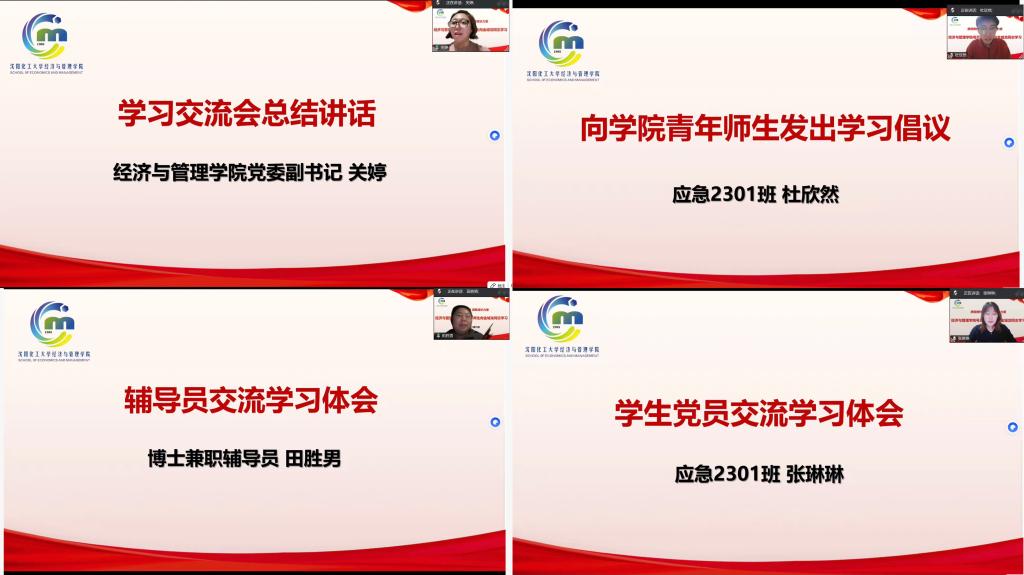 会上,2025级本科生辅导员、本科生党支部书记刘伟介绍了金城龙同志的先进事迹,令参会师生为之动容。随后,全体参会人员共同观看了金城龙同志先进事迹相关视频,进一步感悟榜样力量。青年学生代表会计2303班郑惠芷、应急2301班张琳琳结合自身学习生活分享体会;辅导员田胜男从育人工作实际出发,交流学习榜样精神、践行育人使命的思考与感悟。应急2301班杜欣然向全体青年师生发出学习倡议,号召大家以榜样为引领,勇毅前行。最后,学院党委副书记关婷作总结讲话。她要求全院青年师生要深刻领会金城龙同志先进事迹的精神内涵,把学习榜样精神与个人成长、学院发展、学校建设紧密结合;要以榜样为标杆,树立远大理想、锤炼过硬本领,将榜样精神内化于心、外化于行;在开展各类学习实践活动中,要做好安全防护,确保活动安全有序。
