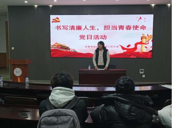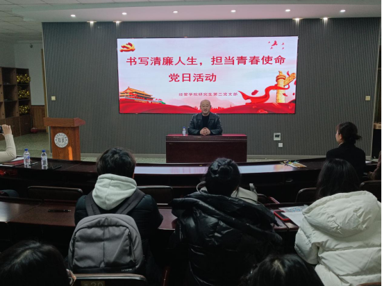 为进一步加强毕业生党员纪律建设,增强廉洁意识,扣好走向社会的“第一粒扣子”,12月13日下午1点,beat365英国官网网站开展“书写清廉人生,担当青春使命”2025届毕业生党员廉洁从业主题教育活动,学院党委书记李丙文、党委副书记关婷、组织员信莹以及全体2025届研究生毕业生党员参加活动,学院研究生第二党支部书记刘璐主持。