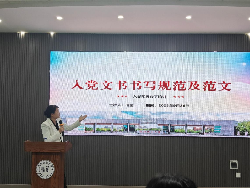 为让培训内容更具指导性与实用性,信老师结合多份优秀范文与典型问题案例进行对比分析。通过展示规范的入党申请书范文,她引导同学们如何结合个人经历、思想成长历程阐述入党动机,避免“套话”“空话”;在思想汇报范文讲解环节,她强调思想汇报需聚焦“思想动态、学习工作情况、存在不足及改进方向”四大核心板块,做到真实反映自身情况、客观分析问题、明确努力目标。并与同学课堂互动交流,围绕“入党的培养过程都有什么”“积极分子阶段需要做什么”两大核心问题,现场解答同学们的关心问题,明确积极分子阶段需完成的理论学习、思想汇报、群众意见征求等任务,鼓励同学们在日常学习生活中以党员标准严格要求自己,主动参与志愿服务、组织活动等,在实践中夯实理想信念根基、提升综合素养。