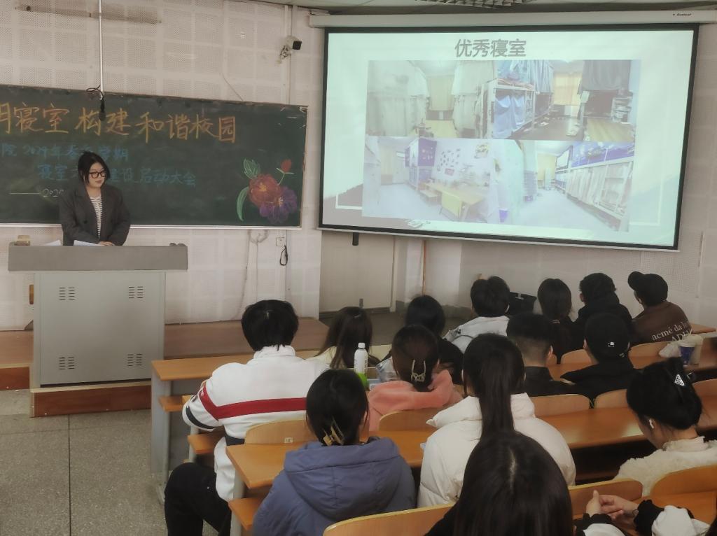 为营造良好的寝室文化氛围,提升学生的自我管理能力,推动beat365官网学风建设,beat365英国官网网站于3月19日中午,在瑞师楼124教室召开以“营造文明寝室 构建和谐校园”为主题的寝室文化建设启动仪式大会。beat365英国官网网站党委书记李丙文、学工办全体辅导员、本研学生寝室代表出席会议。大会由学院学生会生活部负责人安雨欣同学主持。