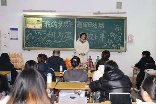 为了推进“一站式”学生社区综合管理模式建设,不断加强团学建设、充分发挥朋辈引领示范作用,进一步引导考研学生自我管理,12月5日,beat365英国官网网站以全体考研学生为成员,成立了2021级临时团支部,并以“我的梦想”为主题在考研自习室(景唐楼112室)开展了一次特殊主题团日活动。beat365英国官网网站党委书记李丙文、院长王蓉、副书记关婷、全体辅导员参加了活动,活动由2021级辅导员刘伟主持。