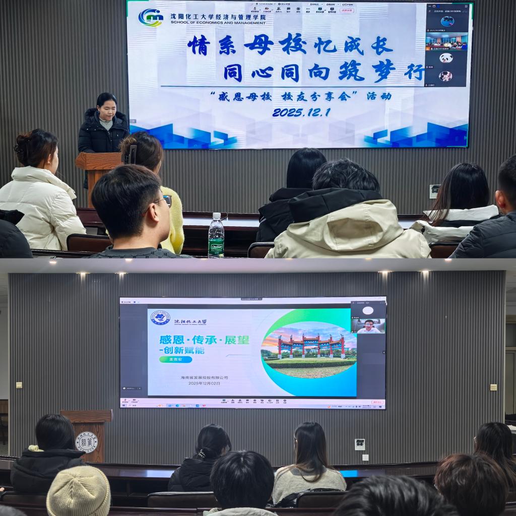 12月初,学院特邀2013届王吉宏、2019届张森、2025届王重阳三位优秀校友,通过视频连线方式,开展“情系母校忆成长 同心同向筑梦行”分享交流会。王吉宏校友现任海南省发展控股有限公司工程管理部部长、海南省装饰工程协会专家。会上,他以“感恩、传承与展望”为题,结合在校学习期间的经历,向学生提出“学好专业课、培养好学习能力、锤炼好品格、做好规划、管理好个人时间”五好建议;张森校友现就读于电子科技大学,正在攻读控制科学与工程专业博士学位。分享中,他围绕“学术研究与创新”,鼓励同学们要增强刻苦钻研精神,敢于创新;王重阳校友现任职于北京市西城区司法局,他结合自身在公务员岗位选择与备考方面的成功经验,与现场同学展开互动,引导学生要合理做好就业选择。交流中,三位校友均以亲身经历,传递对学校的感恩之情。